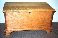 Miniature Cherry Wood Blanket Chest with a natural hand rubbed penetrating oil finish. This chest is similar to the one above but only 16" high, 29" wide , and 15" deep. (Click for view with the chest open.) Typical Price: $975.00 |
